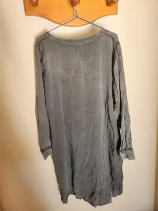 Vestido de manga larga con un diseño moderno y favorecedor. Su tejido ligero y caída le dan un toque especial. - Cuello en V. - Bajo asimétrico. - Acabados con pespuntes.