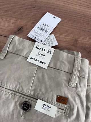 Pantalón chino de hombre, de corte recto en color azul marino. - Talla 40. - Cierre de cremallera y botón. - Bolsillos delanteros y traseros.