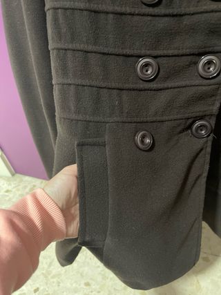 Abrigo marrón con capucha, ideal para el frío. - Diseño de doble botonadura. - Detalle de cinturón fruncido. - Bolsillos frontales.