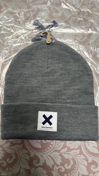 Gorros nuevos sin usar y con etiqueta de punto lana merino de la marca Blue Banana. 1gorro- 20€ 2gorros 35€ 3 gorros 45€ 10 gorros 100€ - Color gris. - Diseño con parche frontal. - Etiqueta de colección.