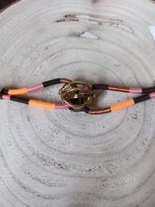 Conjunto de la marca Bimba y Lola pulsera y collar - Diseño con hilos en tonos naranja, rosa y marrón. - Cierre con detalle metálico dorado.