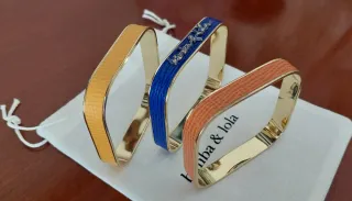Pulsera de la marca Bimba y Lola con un diseño llamativo. - Diseño con estampado geométrico. - Acabado brillante lacada - con bolsita de tela para guardar - muy buen estado