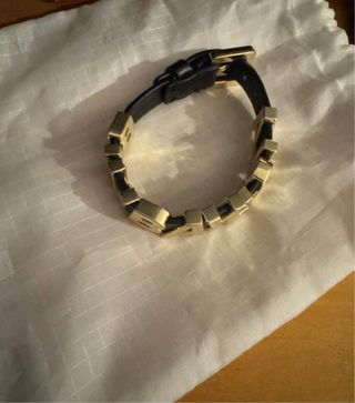 Pulsera BIMBA Y LOLA de piel negra y letras doradas, buen estado con pocos signos de uso y brillante, tiene cierre ajustable ideal para regalo y uso diario La vendo porque no la uso, escucho ofertasss, gracias por escribir