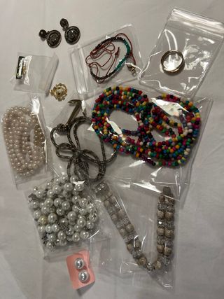Lote variado de bisutería que incluye un collar largo de perlas de Bimba y Lola. - Collar largo de perlas. - Variedad de pulseras de cuentas. - Pendientes y anillo. - Collar con detalles en negro y verde.
