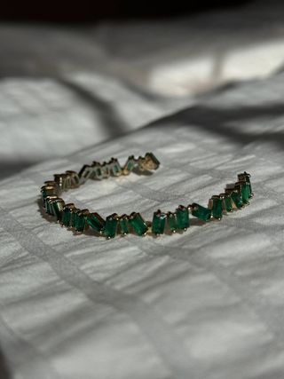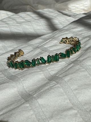 Elegante conjunto de bisutería de Carolina Herrera. - Anillo con detalles de circonitas verdes. - Pulsera con rosetas y circonitas - Pendientes a juego con circonitas. Todo es nuevo con etiquetas y original con referencia de tienda Con su caja regalo Precio anillo : 85 euros Precio pulsera : 80 euros Precio pendientes 89,99 euros Precio conjunto : 245 euros Precio del envío verificado más seguro nacional : 15 euros