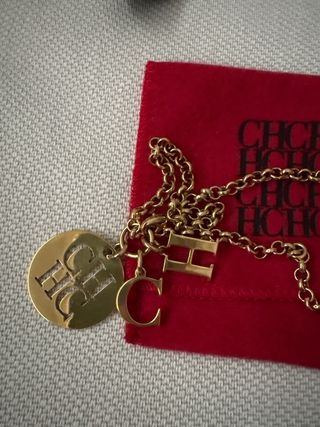 Pulsera original de la firma Carolina Herrera bañada en oro. Formada por una cadena de 18 cm con cierre de mosquetón regulable. - Diseño con doble cadena. - Adorno con el logo de la marca. - Charms con las inicales de 'C' y 'H'. - Charm de perla blanca. Comprada en El Corte Inglés, fue un regalo por lo que no conservo el tique. Su estado es impecable. Entrego con caja original.