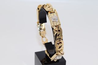 PULSERA TIPO CARTIER MEDUSA GRECA BICOLOR, Hueca. Oro 18k. Peso: 7,92gr, Largo: 20cm, Ancho: 8mm. Joyería nueva, tenemos tienda física en Madrid, Alicante, Elche, Murcia y Granada. Ref.(2455). NOTA: Disponible a juego cadena Ref.(2456). Puedes ver mas joyas en nuestro perfil. No hacemos envíos.