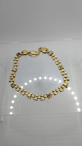 Referencia: AM *0164 Pulsera cartier de oro de 18k con piedras de color. con cadenita de seguridad y cierre de mosqueton Peso: 5.4 gr. Contraste de 750. Puedes pagar poco a poco. Para más información, llámanos al 951494544 o al 640803196. Nos encontramos en C. Álamos, 40 Málaga.