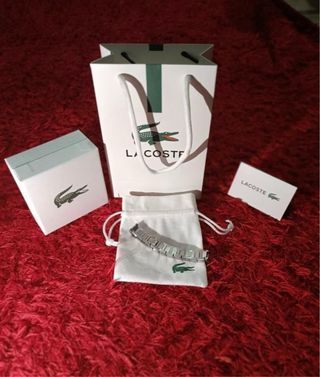 Elegante pulsera de eslabones con el icónico cocodrilo de la marca. -Es de acero inoxidable - Diseño de eslabones metálicos. - Cierre seguro y ajustable. - Incluye caja y bolsa de presentación.
