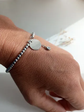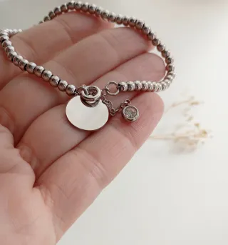 Elegante pulsera de acero con una medalla central. - Medalla redonda con espacio para grabado. - Detalle de circonita - Diseño con cuentas pequeñas de Acero inoxidable. - Grabados Incluidos - Viene con Packaging