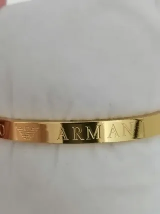 Elegante pulsera de acero inoxidable con un acabado dorado brillante. Está adornada con pequeñas circonitas que añaden un toque de luz. - Material: Acero inoxidable - Diseño: Pulsera rígida - Adorno: Circonitas incrustada (Se aceptan ofertas)