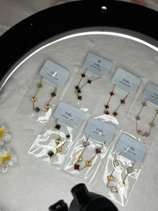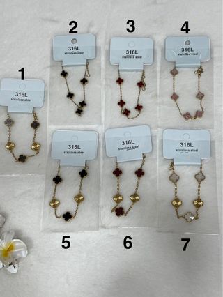 Conjunto de pulseras con diseño de tréboles. Precio por unidad - Acero inoxidable. - Cadena dorada. - Dijes de tréboles en varios colores.