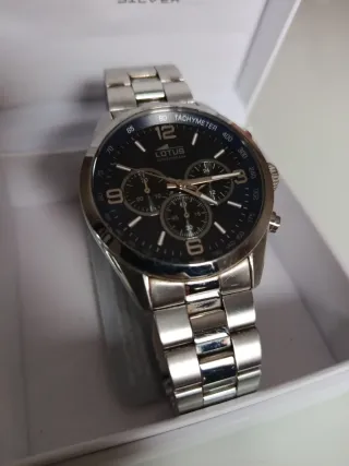 Reloj de pulsera de la marca Lotus con un diseño elegante.(Hace falta cambiarle la pila) - Caja y brazalete de acero inoxidable. - Combinación de colores negro y plateado. - Fue un regalo en su día y yo no soy de llevar relojes. Puesto como mucho un par de años ,pero fines de semana, porque mi trabajo no me lo permite llevarlo diariamente.