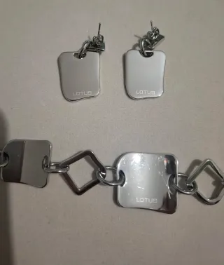 Elegante conjunto de joyería de la marca Lotus.En Acero.Solo dos usos - Pendientes con diseño moderno. - Pulsera con eslabones y detalles grabados. - Color plateado.