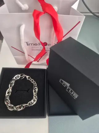 Elegante pulsera de la marca Lotus con un diseño de eslabones y un charm en forma de corazón. - Acabado plateado brillante. - Cierre de mosquetón. - Diseño moderno y delicado. No la he usado nunca, la compré de rebajas. Es de acero inoxidable