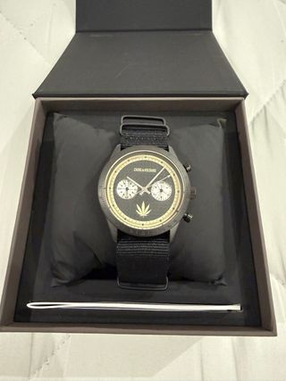 Reloj nuevo nunca puesto / La pila funciona / Esfera: Acero 4 cm de diámetro / Pulsera: Tela 22 cm de longitud / Referencia: ZVM125