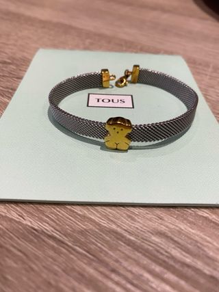 Elegante pulsera de la marca Tous. - Diseño de malla en acero. - Detalles en oro de 18 quilates. - Adorno con el icónico oso de Tous.