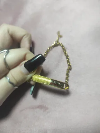 Elegante pulsera con un diseño de letras. - Acabado en tono dorado. - Cadena delicada.