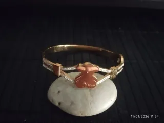 Elegante pulsera de caña con diseño de oso. - Acabado en tono dorado. - Detalles con pequeñas incrustaciones. _ De acero inoxidable
