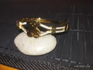 Elegante pulsera de la marca Tous. - Fabricada en acero quirúrgico. - Diseño con el icónico osito de la marca. - Acabado en tono dorado.