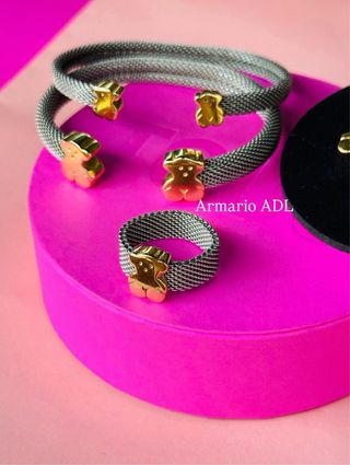 Conjunto Tous: Pulsera y Anillo Acero con Baño