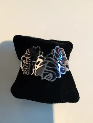 Elegante pulsera TOUS con diseño de rosas. - Acabado en plata. - Detalles en negro. - Diseño calado de rosas.