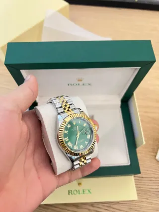 Material: Acero inoxidable de alta calidad. Brazalete: Modelo Jubilee con eslabones centrales en tono oro rosa y cierre desplegable. Bisel: Estriado (fluted) en color oro rosa. Compatibilidad: Ideal para proyectos de modding (ajuste común para movimientos NH35/NH36, aunque recomiendo verificar medidas). Incluye: Caja con cristal, corona a juego y brazalete completo. Mide el diámetro: 36mm o 41mm (las medidas estándar de este modelo). #modding, #relojería, #NH35, #customwatch.