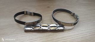 Vendo tres pulseras hombre acero y oro,dos de ellas con el logo Versasse. Las vendo las tres juntas precio pack