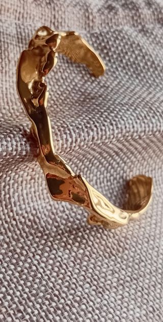 Preciosa pulsera con un diseño único e irregular. Es una pieza llamativa y elegante. Nueva - Material: Acero sobre baño de oro - Color: Dorado. - Diseño: Irregular y con textura.