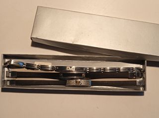 Pack de pulseras: -Pulsera acero y caucho negro, nunca usada, tal como se ve en las fotos. -Pulsera de acero con adornos de oro y cadena de caucho. Tal como se ven en las fotos. Disponible entrega en mano en Valencia o envío.