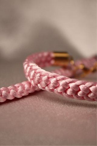 Pulsera de hilo rosa con cierre dorado