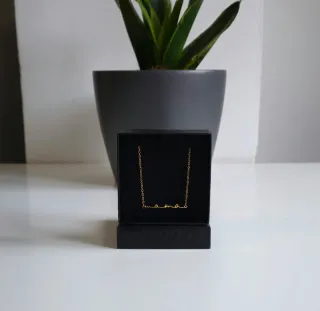 Vendo conjunto de collar y pulsera de acero inoxidable con la palabra Mama. - Diseño delicado con pequeñas perlas de imitación. - Acabado dorado.