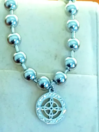 Elegante pulsera de acero inoxidable con un bonito dije. - Diseño con cuentas esféricas. - Dije con símbolo celta o nudo.