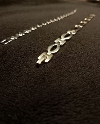 Pulsera con un diseño moderno y elegante. - Bolas de aleación de acero y plata. - Cuerda negra. - Cierre ajustable. - Charm con logo b&g.