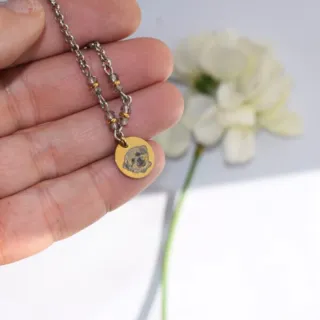 Pulsera dorada con moneda y piedrecitas