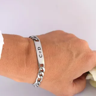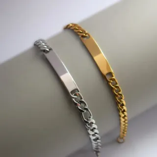 El acero no se oxida fácilmente ni se mancha con el agua, es 100% reciclable y ecológico. Pulsera elegante de acero inoxidable, con chapa para grabar de 10x44mm. Largo 21 cm