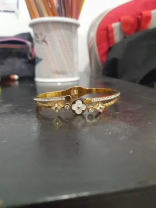 Pulsera dorada con flores y pedrería