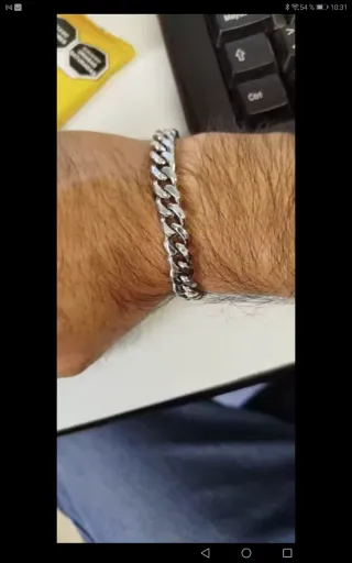 Pulsera de acero con baño de plata de ley. - Diseño moderno y elegante. - Acabado pulido.