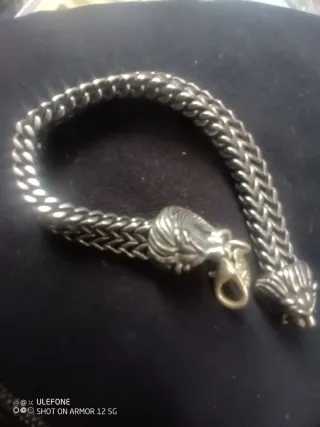 Cadena 50 cm. *(se podría alargar). Pulsera 18 cm. Grueso 6 mm. aprox. (*) tengo un trozo de 9,5 cm. aparte, que me sobraban. # gargantilla collar motero