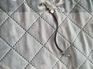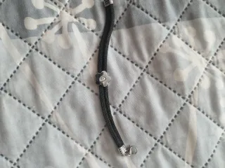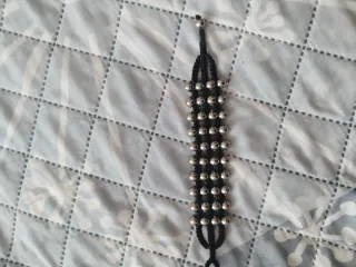 Pulsera con un diseño moderno y elegante, combinando detalles en negro y plata. - Bolas metálicas plateadas. - Cordón negro trenzado.