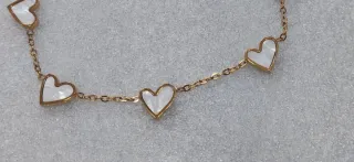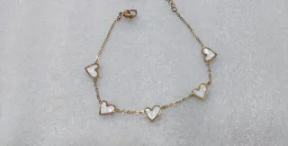 Elegante pulsera con un diseño de corazones. - Fabricada en acero inoxidable. - Acabado en tono dorado y blanco.
