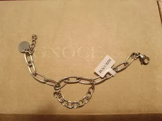 Elegante pulsera con un diseño de eslabones. - Acabado plateado brillante. - Cadena ajustable para mayor comodidad. - Acero inoxidable