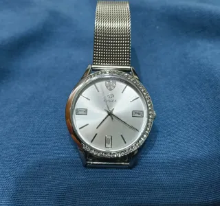 Reloj de pulsera con diseño moderno y elegante. Nuevo, sin usar, en perfecto estado. Caja de 38 mm, esfera negra y correa de acero con eslabones ajustables. Movimiento de cuarzo, funciona perfectamente. Cristal resistente y resistente al agua para uso diario. Ideal para vestir o uso diario.