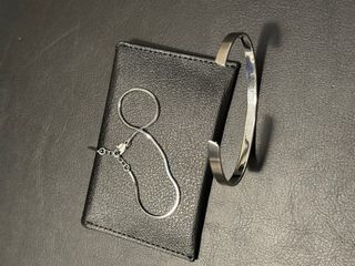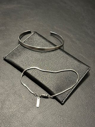Elegante conjunto de collar y pulsera con el icónico diseño de la marca. - Diseño de doble cadena. - Charm CD entrelazado. - Acero inoxidable