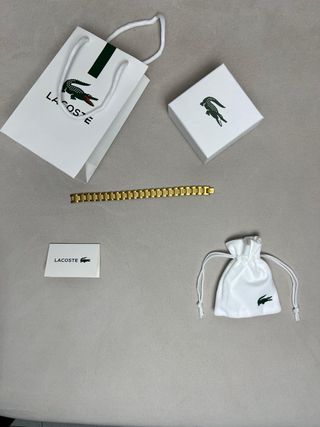 Pulsera Lacoste Metropole dorada – Edición 2025 Totalmente nueva, sin ningún tipo de uso. Se encuentra en estado perfecto. ✔ Fabricada en acero inoxidable con acabado en tono dorado ✔ Resistente al agua y al uso diario ✔ Tamaño ajustable ✔ Estilo minimalista y elegante, con presencia sin resultar llamativa Un accesorio que añade un toque sofisticado y discreto a cualquier look. Ideal tanto para el día a día como para eventos o ocasiones especiales. Incluye pack completo original: • Caja Lacoste • Bolsa de tela Lacoste • Bolsa de compra Lacoste • Etiqueta Perfecta también como regalo 🎁 📦 Envío rápido 📍 Posibilidad de entrega en