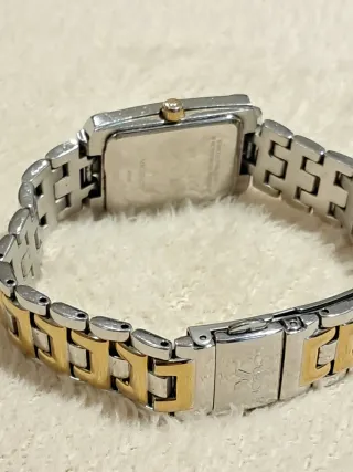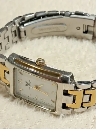 Elegante reloj de pulsera Viceroy con un diseño bicolor que combina tonos plateados y dorados. La caja y la correa están fabricadas en acero inoxidable, ofreciendo durabilidad y un acabado brillante. - Diseño rectangular de la esfera. - Detalles en tono dorado en la esfera y la corona. - Cierre de seguridad en la pulsera. - quartz - modelo 40906