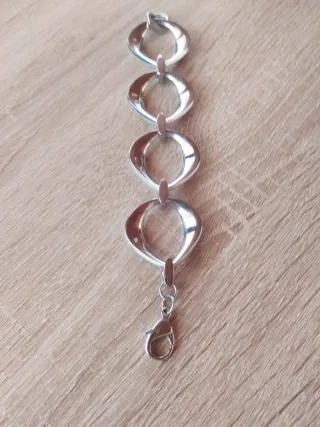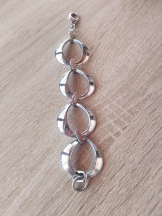 Elegante pulsera de acero con un diseño moderno de eslabones ovalados interconectados. Un accesorio llamativo y versátil. - Material: Acero. - Diseño: Eslabones ovalados. - Largo 17'5 CMS y ancho eslabon 3'5 cms