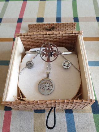 conjunto collar, pendientes y pulsera de acero inoxidable.
