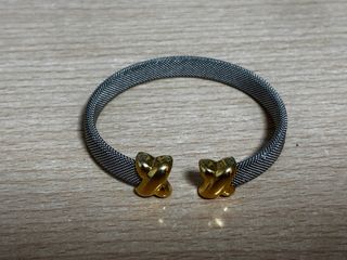 Elegante pulsera con un diseño moderno. - Material: Acero y metal. - Acabado: Dorado y plateado.