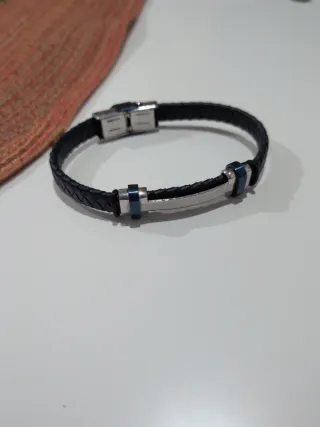 Pulsera de cuero y acero inoxidable para hombre, elegante y atemporal. Diseño sobrio y masculino, ideal para uso diario o para ocasiones más arregladas. 🔹 Cuero trenzado negro 🔹 Detalles y cierre en acero inoxidable 🔹 Medida: 20 cm exactos hasta el cierre (ver foto con medida estirada) En muy buen estado, cómoda y resistente. 📍 Entrega en mano en Madrid o envío rápido por Wallapop 📦